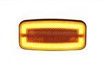 This amber-coloured LED marker light from Horpol s MV-4900 serie is designed for use as a side marker light with integrated reflector. Thanks to its compact size of 111 x 52 x 20.5 mm and surface mounting, it is suitable for mounting on various types of commercial vehicles. The housing and lens are made of polycarbonate, which makes the product resistant to mechanical stress and moisture. The lighting operates within a voltage range of 12-24 V, and features a 50 cm connection cable with open wire end. The IP68 rating guarantees dust and water resistance when submerged. Furthermore, this LED marker light is CE marked and approved according to standards ECE R10, ECE R3 and ECE R91.Plus points of this series: Available with handy mounting bracket Available in amber, red and white for a uniform appearance all around Stylish neon-look design