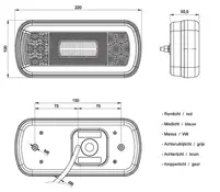 This LED rear light from the Fristom 600-serie combines the functions: rear light, brake light, indicators and reversing light. Its design with integrated reflector makes it suitable for a variety of applications on 12V trailers, commercial vehicles and agricultural vehicles. The rear light is suitable for surface mounting and, with a size of 220 x 100 x 50.5 mm, has a compact design. The housing and lens are made of polycarbonate, which contributes to its impact resistance. With its IP68 rating, the rear light is completely dust- and waterproof. The 100 cm cable with open wire end allows for flexible installation, horizontal or vertical. Multi-voltage support of 12-24 V and certifications CE, ECE R10, R3, R6, R7 and R23 make this model compliant with various vehicle and regulatory requirements within Europe. Plus points of this series: - Neon rear light with reflector - Can be mounted both horizontally and vertically - Fully certified - voltage